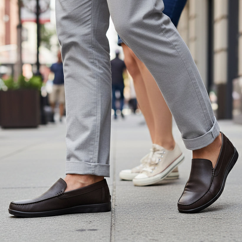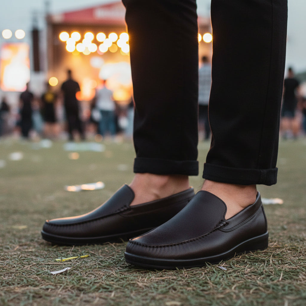 Crafted from waxed leather it boasts a moccasin slip-on style for easy wear and intricate stitching that adds a refined touch. 🎨